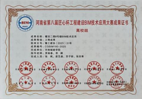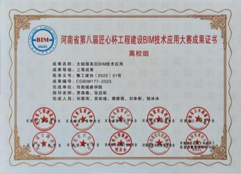 此次获奖成果不仅为公司相关专业教学提供了鲜活实践案例,也为BIM技术在工业建筑领域的深度应用提供了优秀范本。未来,智能建造与交通工程公司将以此次获奖为契机,进一步深化智能建造领域教学改革与科研创新,激励广大师生持续探索智能建造新质生产力,为推动河南省乃至全国建筑产业高质量发展贡献更多教育力量与技术智慧。(供稿 智能建造系)
